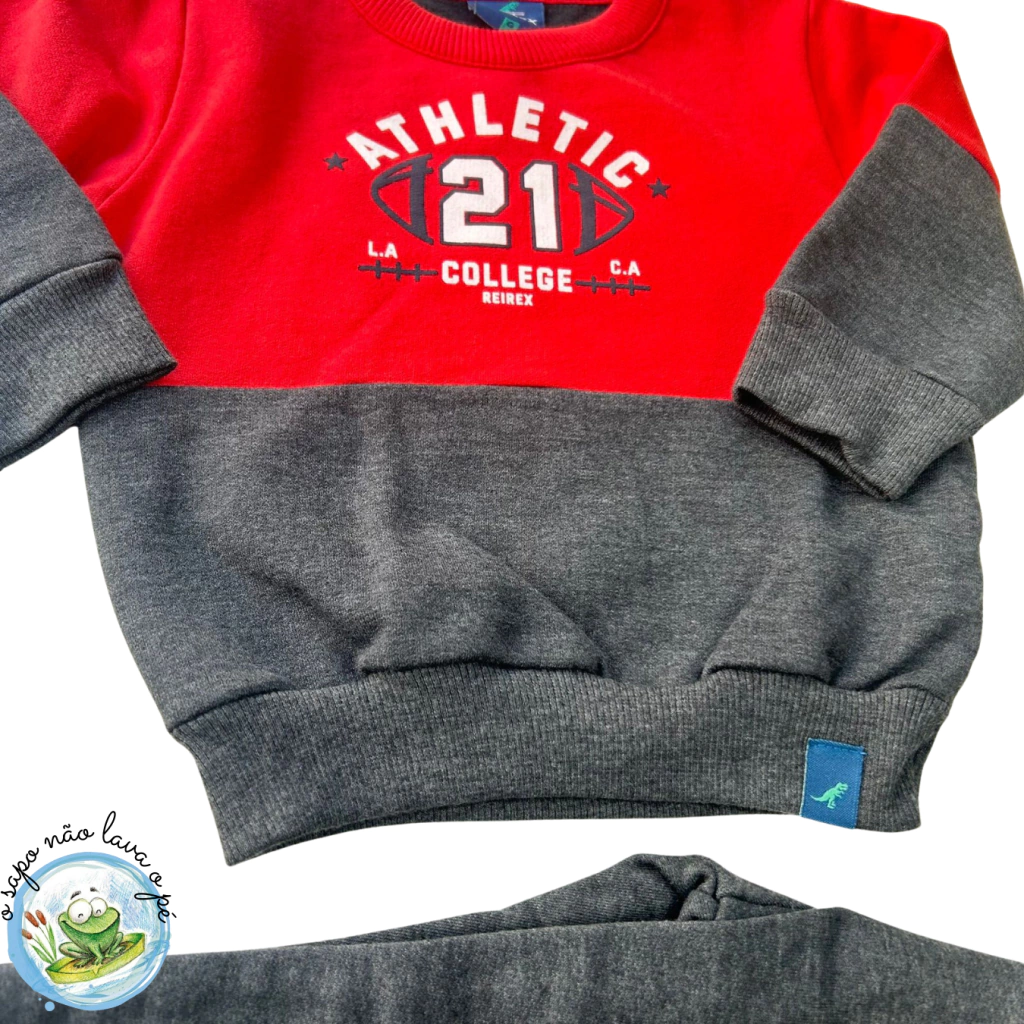Se você busca conforto e estilo ao mesmo tempo, o Conjunto Athletic 21 é a sua escolha certeira! Composto por uma blusa SEM capuz e uma calça com punho nabarra, esse conjunto é perfeito para quem quer estar despojado, mas sem perder a elegância.