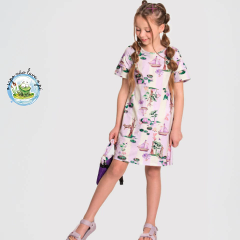 Prepare-se para entrar em uma jornada mágica com o nosso Vestido Floresta, uma peça encantadora que traz listas verticais lilas e brancas, em um tecido leve que é tão confortável que você vai querer usá-lo até para ir ao supermercado! E quem não ama um vestido que faz você se sentir como uma verdadeira deusa da floresta?